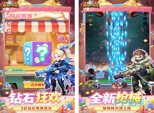 采用鲜明卡通渲染风格,但在核心玩法上深度植入Roguelike机制:每次开局随机生成地图结构、武器掉落池与技能组合树。玩家通过击败僵尸积累能量,触发连击加成与临时属性增幅。枪械系统包含十余种基础类型,每种均可通过局内选择进化分支(如散弹枪→锥形扩散/延迟爆炸;狙击枪→穿透射击/连锁标记),形成高度个性化的Build流派。