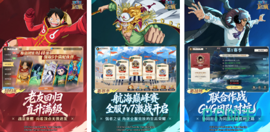 获得官方正版授权,玩家将担任船长身份,招募路飞、索隆、娜美等原作核心角色,深入理解每位角色的外观特征、性格设定与专属技能机制。通过自由搭配阵容,参与海上争霸赛、巅峰对决等PvP玩法,打造高协同性航海团队。