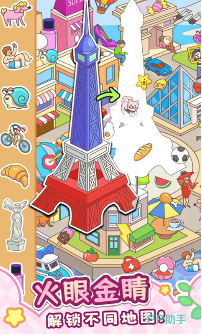 专为视觉辨识与精细动作发展设计的认知训练工具。包含两大核心模式:主题式贴纸拼图(涵盖动物、交通工具、四季景观等百余主题)与限时找不同挑战(双图比对,差异点数量与位置动态生成)。系统自动记录通关用时与错误次数,生成简明成长报告,便于家长掌握阶段性进步。辅助道具如提示框、重置键与放大镜均采用一键触发设计,保障低龄用户操作自主性。