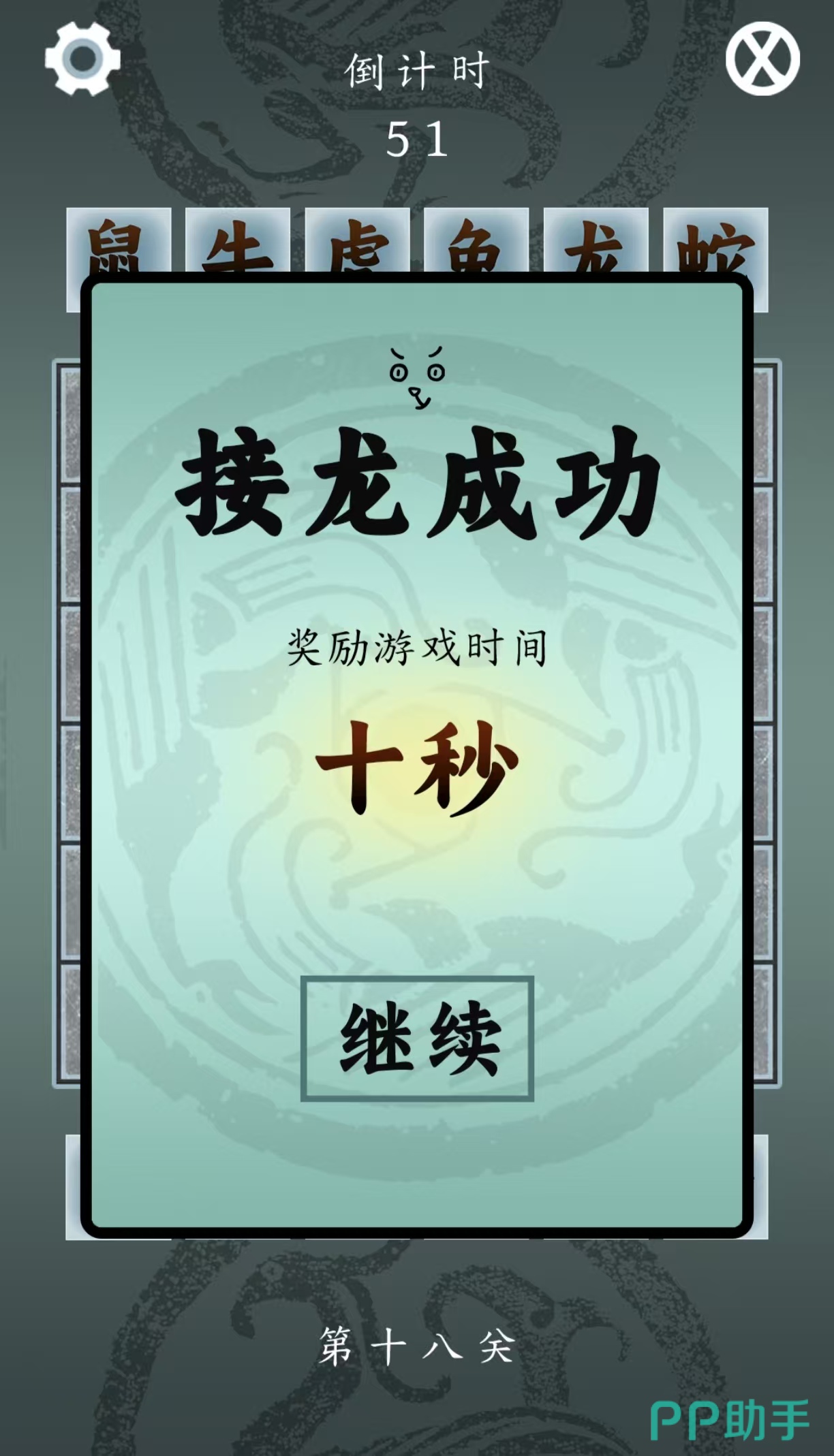 本作以极简水墨风构建游戏场景,主打汉字接龙闯关机制。每关设有倒计时限制,玩家需点击由鼠、牛、虎、兔、龙、蛇、马、羊、猴、鸡、狗、猪十二种动物形象构成的方块,按生肖顺序完成连续点击。关卡设计融入甲骨文、篆体等传统字形元素,兼顾文化科普与逻辑训练。