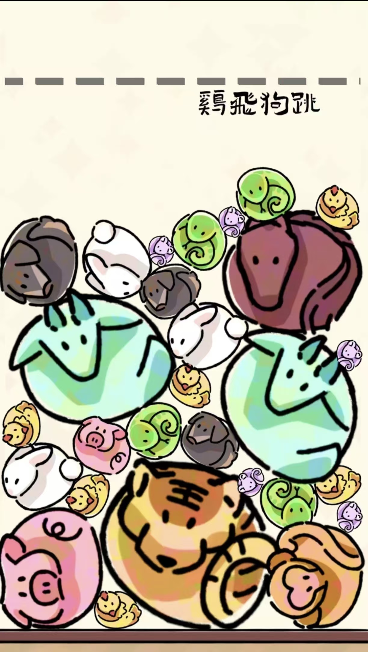 基于物理下落合成机制打造,各类生肖图标自屏幕顶部随机下落。玩家通过调整落点位置,促使相同动物碰撞融合升级(如两个鼠→一个牛,两个牛→一个虎),部分特殊组合(如龙+云、猴+桃)会触发特效反馈与额外积分。图标尺寸、下落速率、色彩饱和度均动态变化,营造节奏分明又舒缓解压的游戏氛围。
