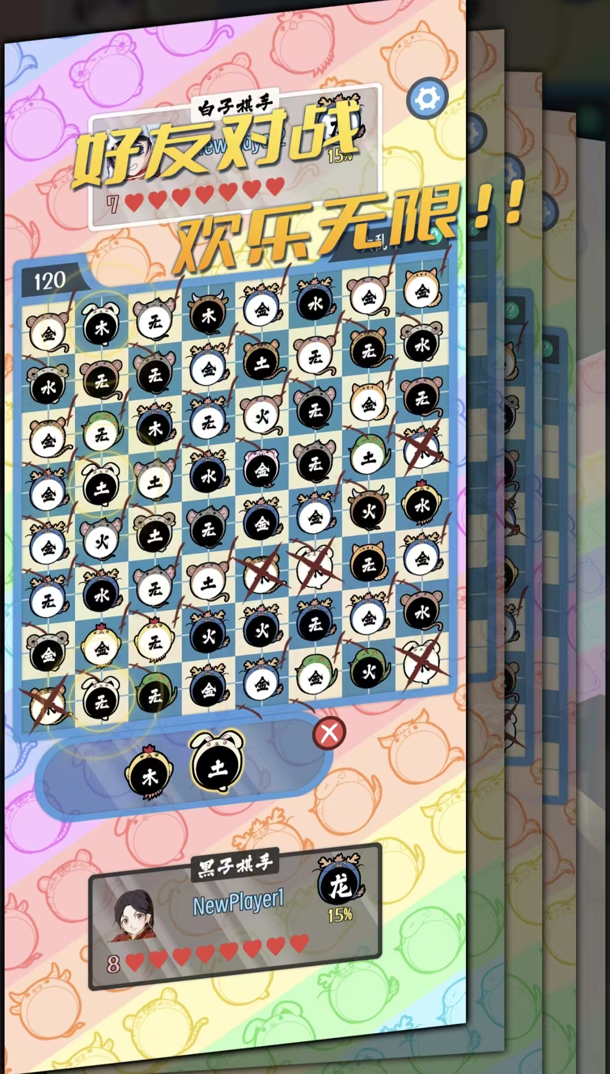 创新性地将五子棋规则与五行相生相克理论结合,每枚棋子标注金、木、水、火、土属性,并对应鼠(子水)、牛(丑土)等十二地支生肖。开局可选定主控生肖,其自带被动技能影响战局(如龙系增益攻击距离、猴系提升落子速度)。对战需同时满足“五子连线”与“属性压制”双重条件,支持人机对弈、实时PVP及残局推演模式。