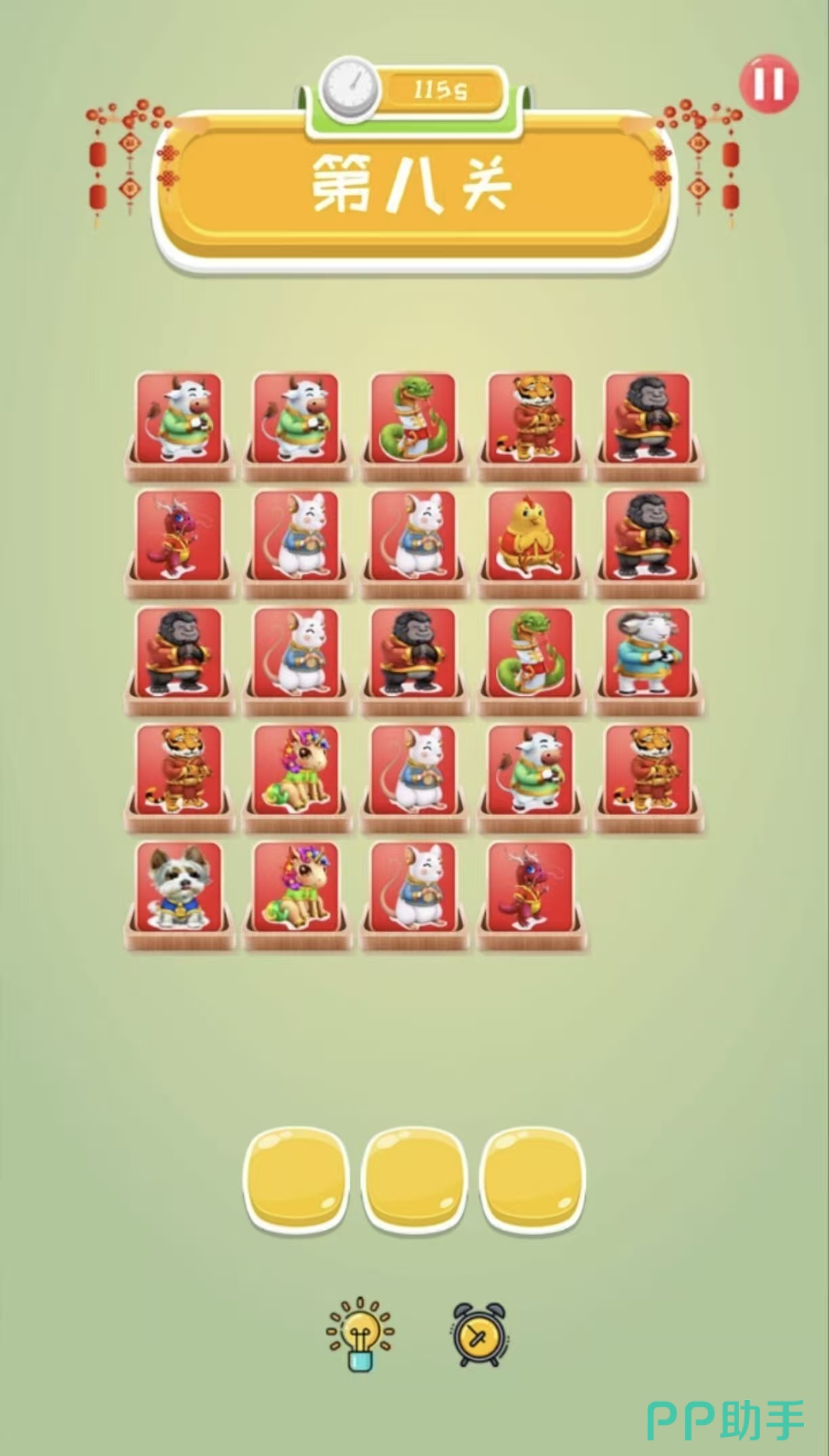 融合叠叠乐与三消逻辑,界面呈现多层堆叠的生肖图标阵列。玩家需优先清理上层遮挡物,逐步暴露底层目标图块,最终达成三连消除目标。支持撤销操作与局部重排功能,适配新手入门;音效清脆利落,配合震动反馈增强操作沉浸感。提供限时挑战、步数限制、无尽模式等多种玩法分支。