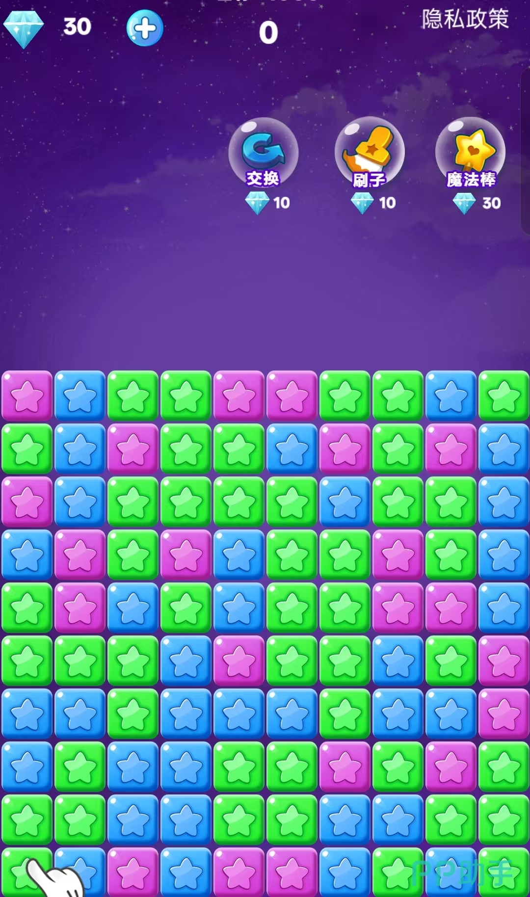 以缤纷星空为背景,本作延续经典三消逻辑但注入全新视觉语言。玩家需将同色星星方块移动至相邻位置后点击消除,单次消除数量越多,基础分加成越显著。每关设有明确积分目标,达成即可解锁后续关卡。无体力限制、无强制社交、无复杂养成,纯粹依靠策略预判与手眼协调推进进程,是典型的“五分钟一局,十分钟上头”式解压体验。