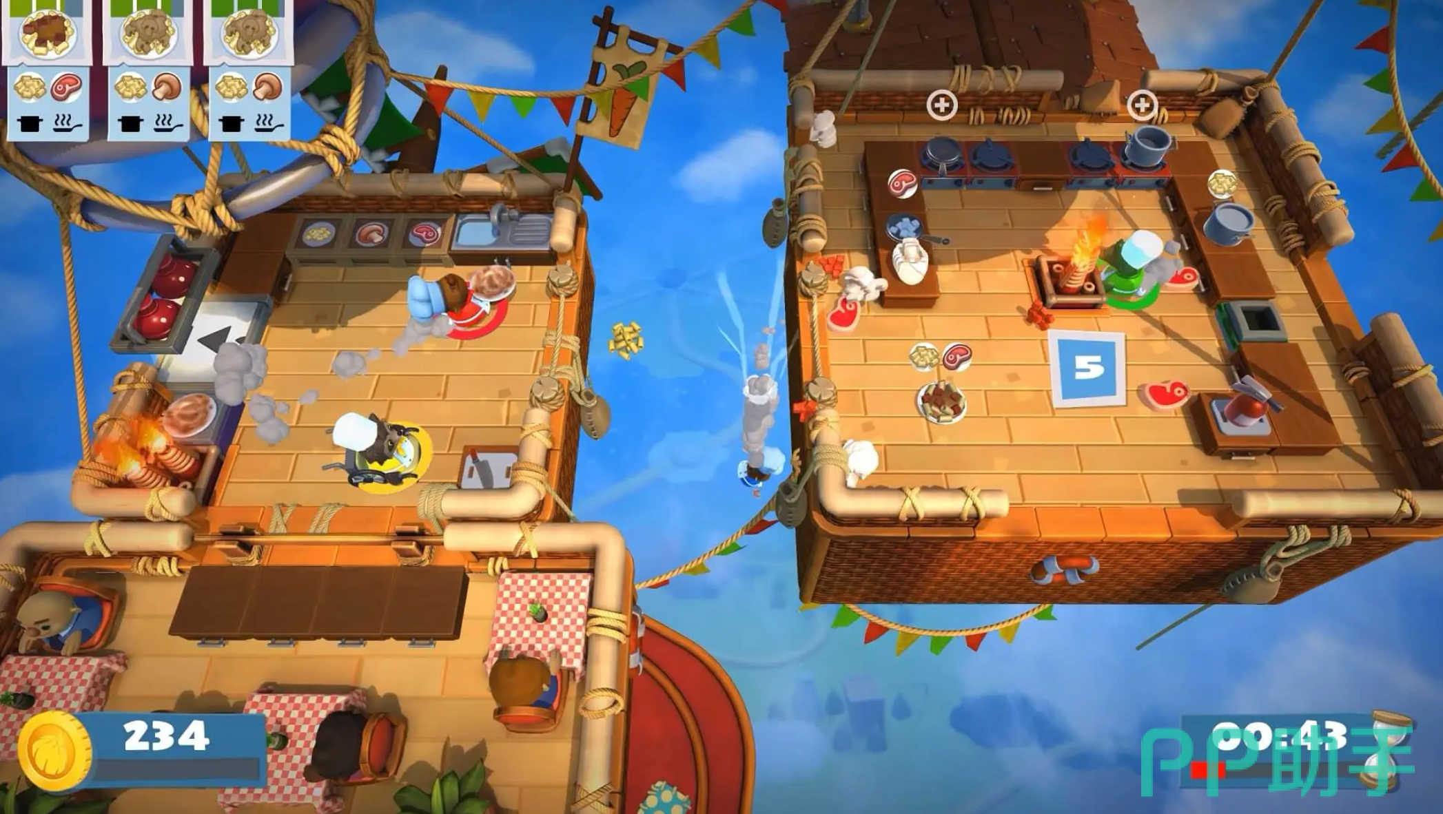 合作向厨房模拟游戏,完整还原切配、烹煮、装盘、清洁四大作业流程。所有环节均需多名玩家协同操作,分工失误将直接导致任务失败。创新引入动态压力值系统,数值升高会降低角色动作精度与响应速度,要求团队实时沟通、合理分配负荷。全作共设72个主线关卡,并隐藏若干彩蛋任务与特殊成就。