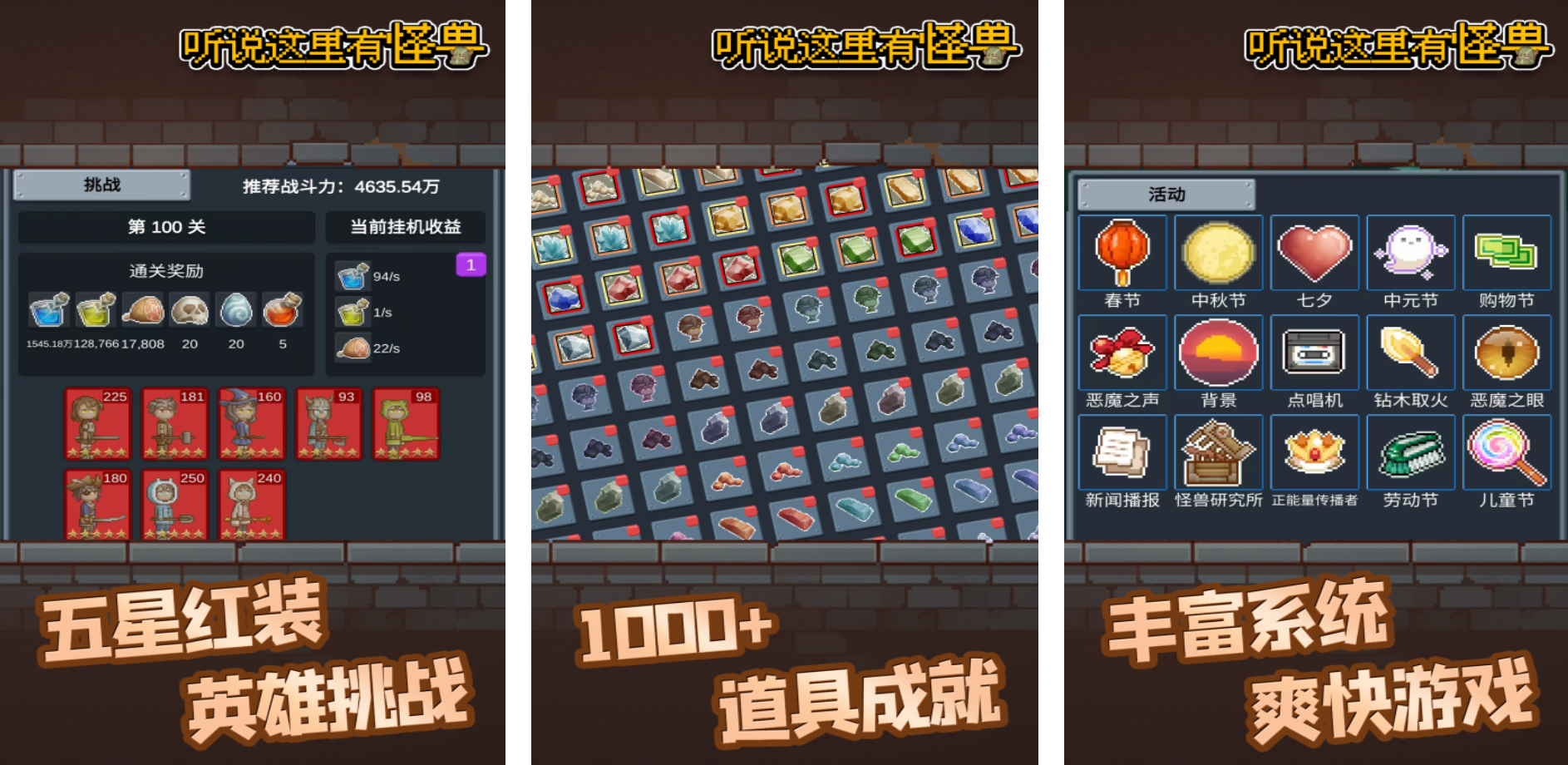 本作构建于像素风奇幻大陆“兽魂世界”,玩家以勇者身份深入多层地牢展开探索。养成路径兼顾手动精控与智能挂机双模式,通过副本积累资源逐步打造五星红色装备体系,为挑战高阶Boss夯实基础。游戏共设8名职业定位明确的可操作英雄,Boss图鉴达18种,配合千余种道具收集、成就解锁及专业化协同探索系统,形成丰富可持续的内容循环。