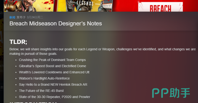 作为全球热门的大逃杀竞技作品,《Apex英雄》始终将角色强度、武器性能与战场机制的公平性置于更新核心。每逢季中版本迭代,官方都会围绕平衡性展开系统性优化,既激活冷门传奇,也调整强势体系,从而持续拓展战术深度与玩家体验边界。当前赛季已步入关键节点,官方正式公布了季中大型更新内容,涵盖英雄技能重制、武器系统重构、全新装备加入及机制细节优化等多个维度,以下为本次更新的全面解析。