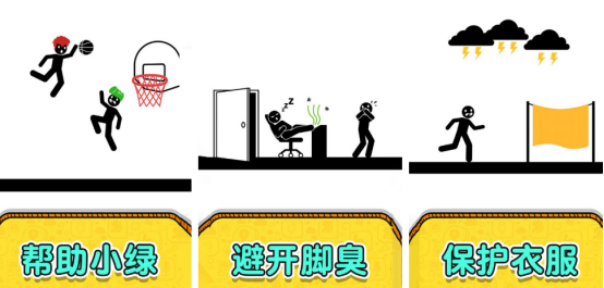 延续前作核心机制,升级关卡逻辑复杂度。例如某关需同时处理双角色投篮路径:绿色发色火柴人需完成三分球,而对手正试图封盖。玩家须在有限区域内绘制阻挡线,既要规避自身角色碰撞体积,又要确保拦截角度符合运动学原理。