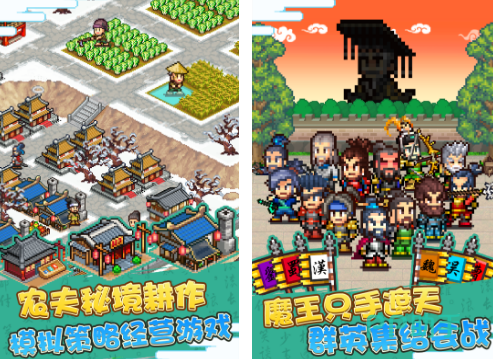 本作以东汉末年群雄割据为背景,将经典三国题材与像素化经营系统深度融合。玩家需从零开始建设村庄,招募并培养赵云、黄忠等特色武将,升级战马与兵器,打造专属军事力量。角色与载具均采用Q版小巧造型,但战斗部署、兵种克制及资源调配仍需严谨策略,兼顾趣味性与策略厚度。