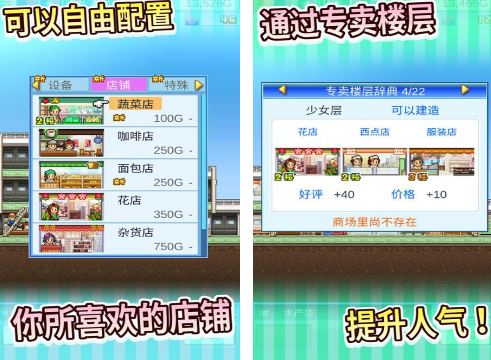 聚焦现代零售业生态,玩家需从单层商铺起步,逐步扩建至多层综合商场。通过招商入驻、电梯配置、动线优化、促销活动等方式提升顾客停留时长与消费转化率。支持按品类划分专卖楼层(如美妆层、数码层),亦可自定义装修风格与店铺组合,高度还原实体商业体运营逻辑。