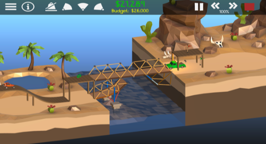 本作以真实物理引擎为核心,玩家需运用木材、钢材等材料,在不同地形条件下搭建承重结构。游戏内置30余种关卡,难度梯度设计合理,能直观呈现受力形变、应力分布等力学现象。对初中生而言,既是物理课堂中“力与运动”“结构稳定性”等知识点的延伸实践,也同步锻炼空间构型、成本估算与系统规划能力。