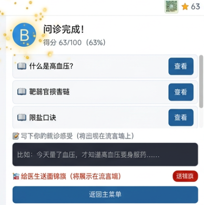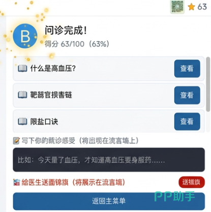 社区互动板块“流言墙”进一步拓展了学习边界。玩家可在该区域发布诊疗心得、探讨疑难病例、分享知识笔记,并通过他人反馈验证自身判断。成功完成高难度问诊任务后,还可收获患者感谢信或数字锦旗,强化正向激励机制。这种基于真实案例协作的学习模式,有效提升了用户粘性与社群归属感,也让每位参与者的成长轨迹清晰可见。