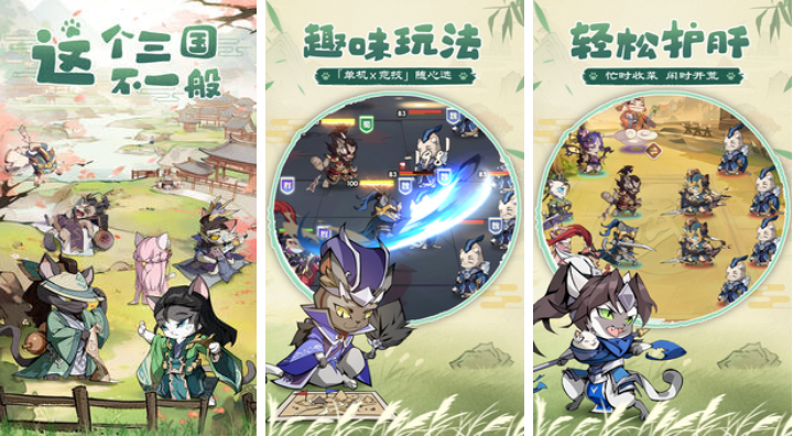 一款以萌系拟人化重构三国历史的轻量化放置RPG。所有武将均以猫科动物形象呈现,结合经典典故进行性格再创作。核心玩法围绕自动战斗、阵容养成与副本挂机展开,支持离线收益累积与跨服排行榜比拼。美术采用赛璐璐渲染+手绘质感线条,UI动效细腻流畅,新手引导全程语音伴读,适配全年龄段用户操作习惯。