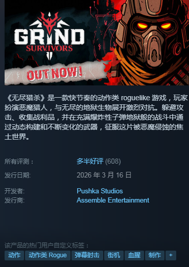 《无尽猎杀》作为一款主打暗黑风格的魔物狩猎动作游戏,凭借高节奏战斗、实时技能自由组合机制及深度联机协作体验,自公布起便持续引发玩家热议。当前备受关注的核心信息之一,便是其正式发售时间节点——该游戏已于2026年3月16日全平台同步上线,距今已稳定运营十余天。支持平台包括PC端、PlayStation 5以及Xbox Series X/S,全面覆盖主流主机与电脑用户。