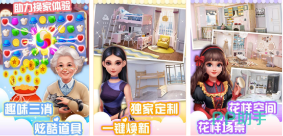 强调个性化家园构建,所有家具与装饰品均需通过三消玩法获取。玩家在精美高清图鉴界面中滑动匹配图案,积累资源后进入3D空间进行布局。支持从单间公寓到顶层复式等多种户型,提供全景视角缩放与多角度旋转功能,助力实现精细化空间营造与风格化表达。