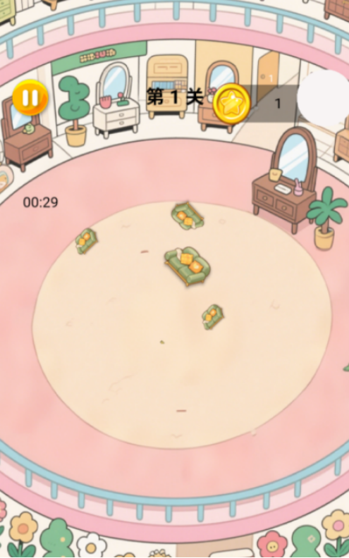 以物理搬运为核心玩法,玩家需在限定空间内完成家具的位移、旋转与精准落位。场景中随机生成障碍物(如立柱、台阶、狭窄门廊),考验路径规划能力。挑战梯度涵盖紧凑型公寓、多层复式及超大面积别墅,通关特定任务可解锁隐藏家具图鉴与加速、吸附等实用辅助道具。