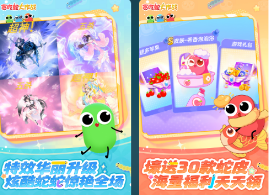 轻量级多人实时对抗休闲游戏,《贪吃蛇大作战》延续经典贪吃蛇机制,优化为触控灵敏、节奏明快的竞技模式。无尽模式考验走位预判与风险控制;匹配模式支持2v2团队对抗与5v5乱斗,强调实时反应与战术配合。游戏提供海量个性化皮肤,涵盖节日限定、联动主题等多类风格,满足差异化审美需求。