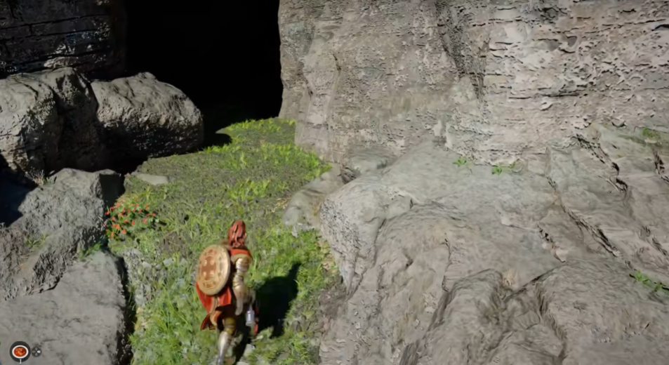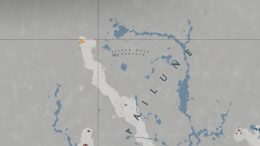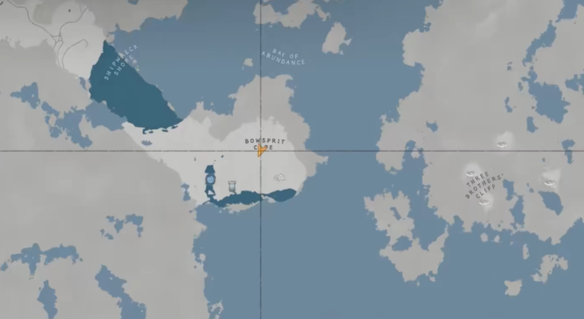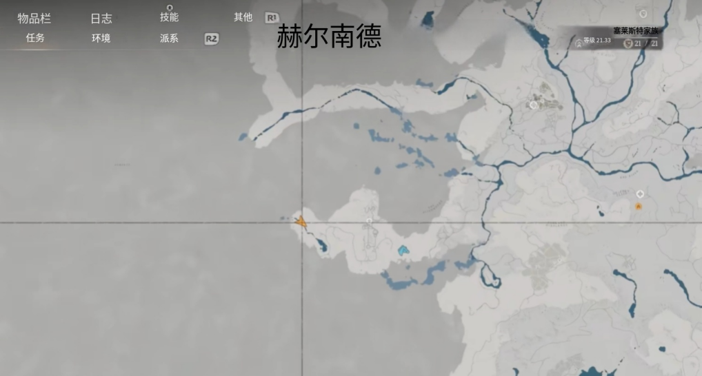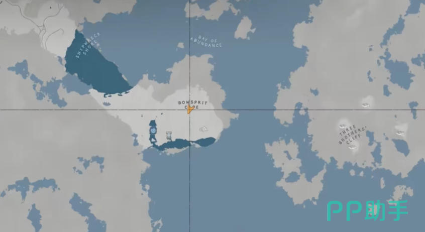 前往地图中央偏东的波斯普里特角——一片向海域延伸的陡峭半岛。区域内多为裸露岩层,重点搜索鼠标标示附近的带裂缝地形。对准裂缝连续跳跃下落,抵达底部后进入山体通道。通道深处光线昏暗,留意左侧带有暖黄色微光的内凹平台,其上放置的宝箱即为目标道具所在。