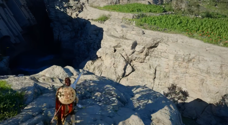 移步至地图西侧赫尔南德区域,锁定一处显著的大型瀑布。从瀑布旁山崖边缘靠近水面,贴紧水流方向蓄力发动攻击,即可穿透水幕进入后方山体内部。穿过水幕后,沿狭窄岩缝前行,尽头即为藏有该武器的宝箱。
