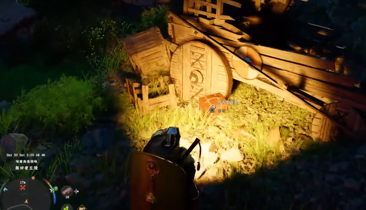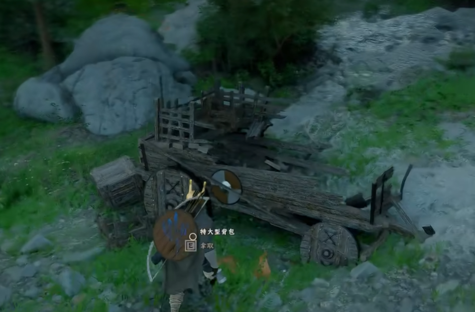 抵达木车架旁后,调整角色视角向下,确保背包图标完整显示于交互范围内。当界面弹出“拾取”提示时,按对应键确认即可完成获取。该道具无需任务触发,无等级或条件限制,所有玩家均可直接拾取。