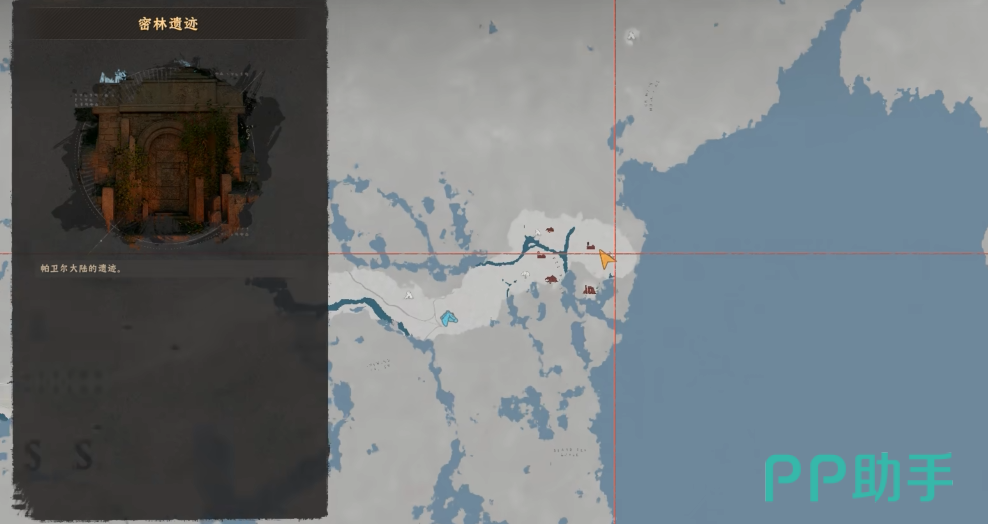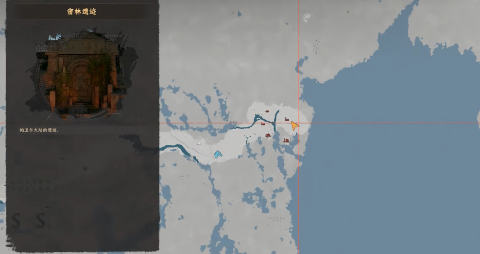 该图纸位于地图最东侧区域——密林遗迹。请打开全局大地图,定位至图中标注的房区建筑群,此处即为入口坐标点。