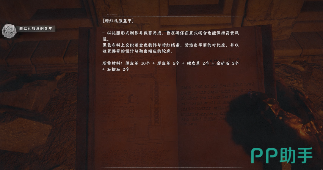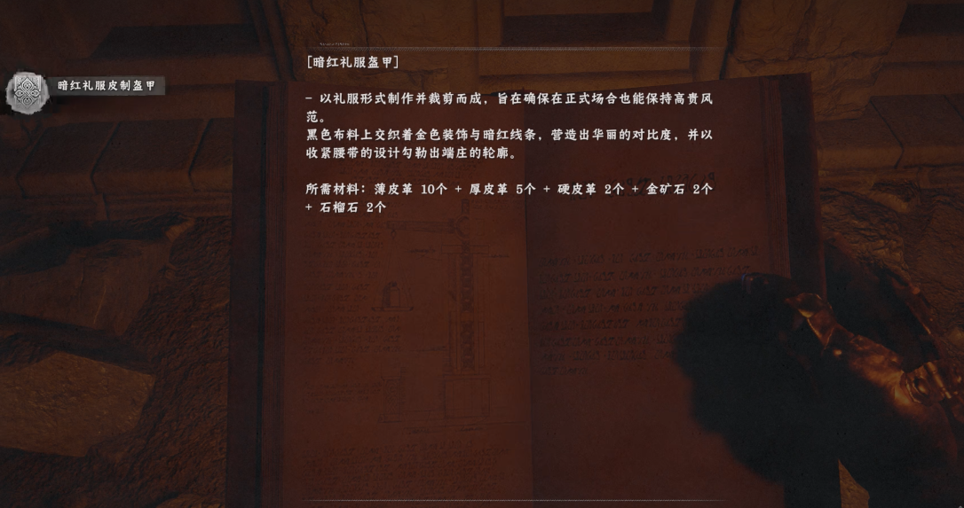 穿过通道后继续深入,于尽头高台处可拾取【暗红礼服盔甲】图纸。此为唯一获取途径,不可通过商店购买或任务奖励替代。