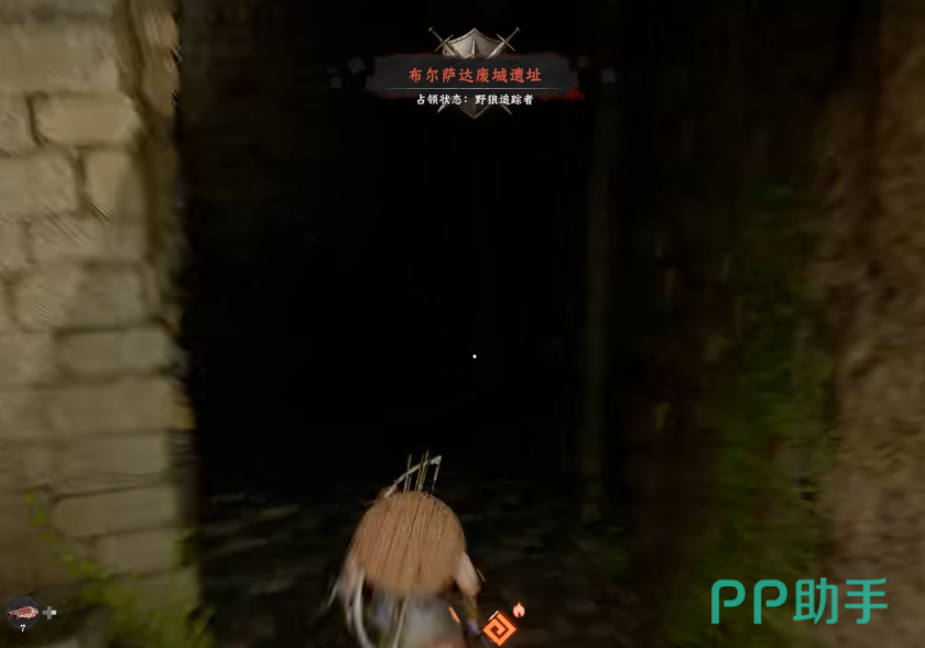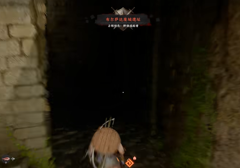 抵达后可见布尔萨达废城遗址,其主入口为一处幽暗洞穴。进入前请注意观察洞口右侧墙体——存在一块略微凸出的方形砖石结构。