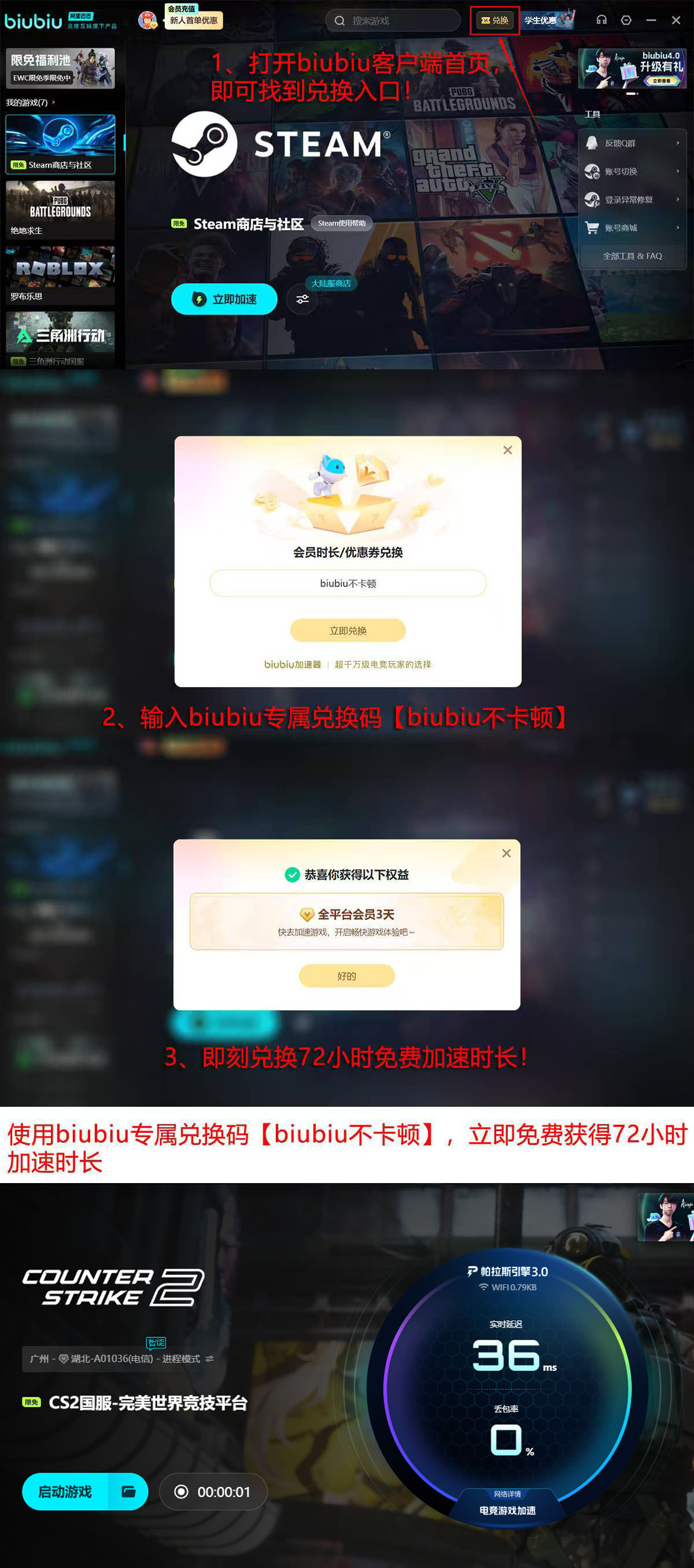 当前新用户注册即可获得24小时免费加速时长,登录后进入首页“兑换中心”,输入口令【biubiu不卡顿】还可额外领取72小时权益,累计享96小时无限制体验。对于追求竞技公平性与操作一致性的CS:GO玩家而言,从网络底层重构连接质量,比单纯升级硬件更具即时改善效果。