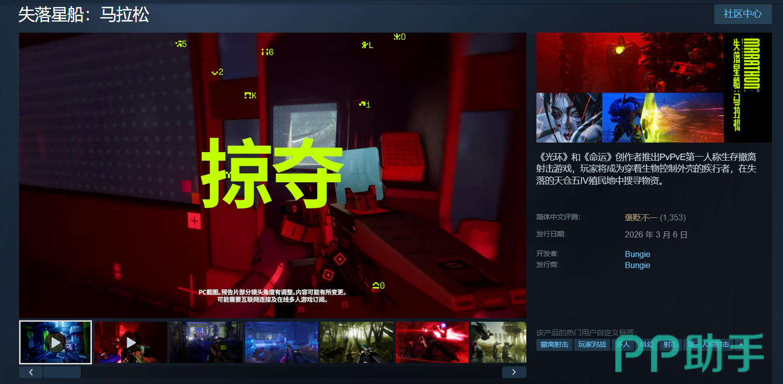 《失落星船马拉松》是一款融合科幻叙事与高强度撤离机制的多人联机射击游戏,凭借快节奏的限时竞速玩法和深度策略协作体验,正引发全球玩家广泛关注。本作定档于2026年3月6日,同步登陆PS5、Xbox Series X|S等主流主机平台,标志着该IP正式进入规模化运营阶段。