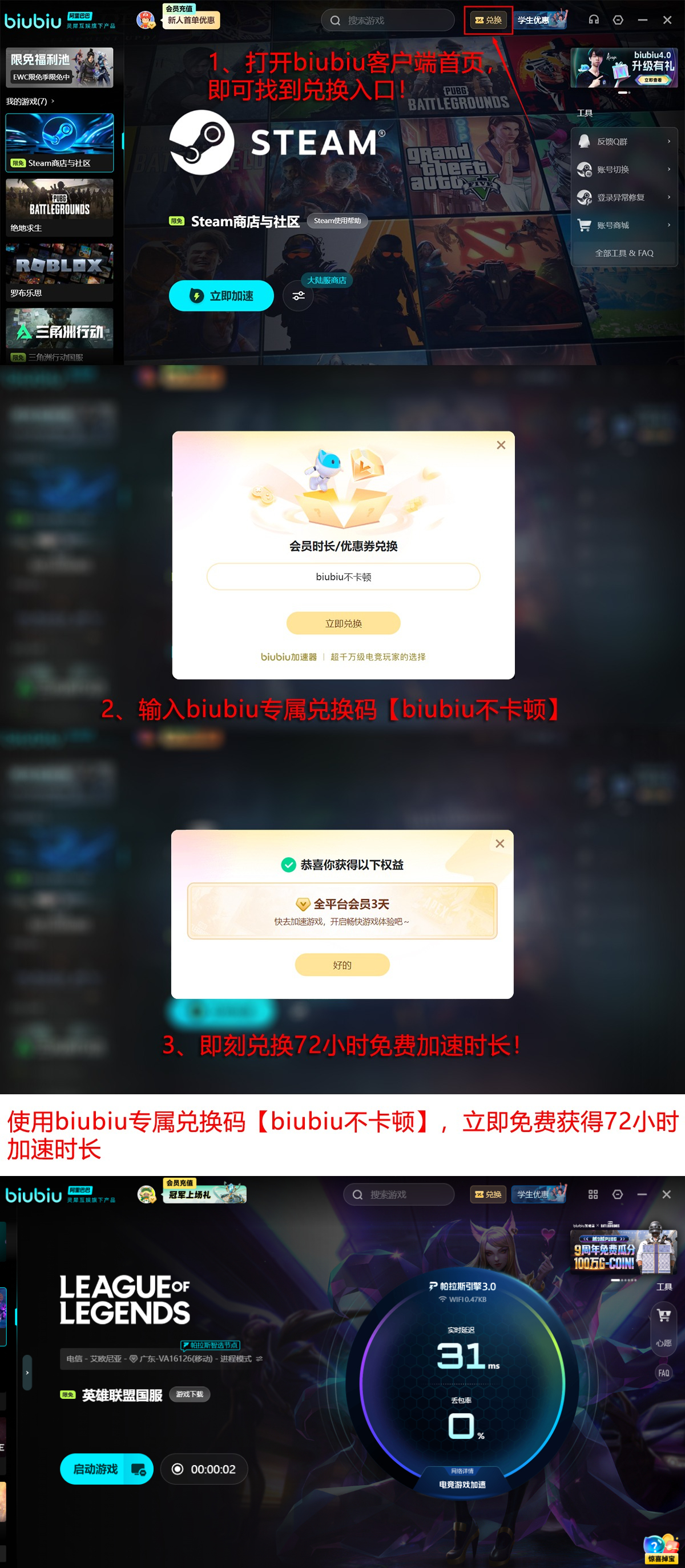 针对长时间对局场景,biubiu提供“防休眠”功能,可阻止系统自动进入睡眠状态,确保后台进程持续运行。新用户注册后即可解锁24小时全功能试用权限,无需绑定支付方式,体验完整加速能力后再决定是否订阅。所有用户均可凭兑换码【biubiu不卡顿】额外领取72小时加速时长,叠加新人首日权益,总计可达96小时连续可用时长。