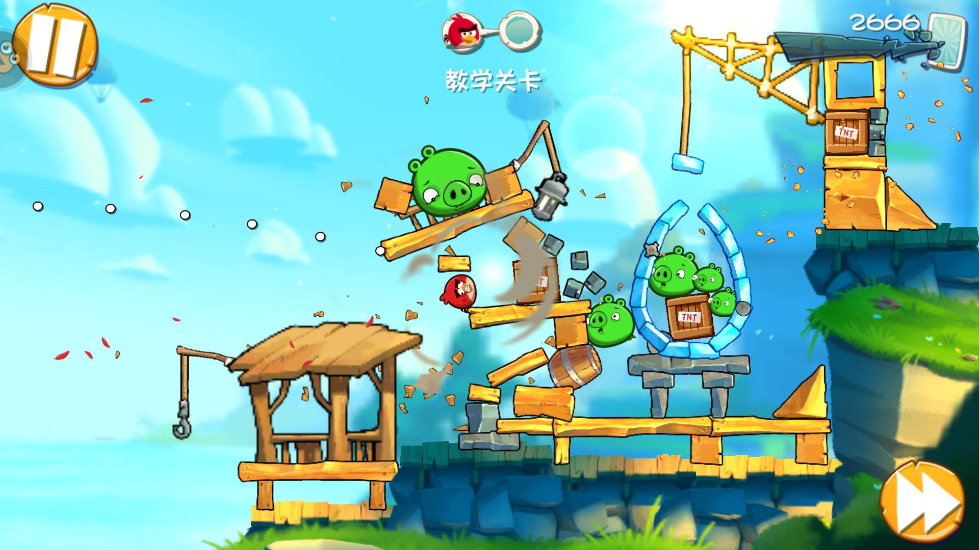 该版本忠实还原初代核心玩法:通过调整发射角度与力度,利用小鸟的物理碰撞特性摧毁敌方建筑结构,营救被囚禁的同类。每关建筑布局差异显著,承重逻辑、材料属性、机关触发机制各不相同,要求玩家进行力学分析与路径推演。红鸟、蓝鸟、黄鸟、黑鸟等角色拥有专属技能,合理搭配使用是通关关键,考验观察力、计算力与临场决策力。