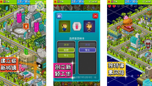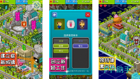 采用复古像素美术风格,构建出富有辨识度的星际小镇世界观。玩家需协调居民就业分配、调控公共服务供给、推进基建迭代升级,并支持自定义NPC生成与职能指派。随着区域解锁进度推进,可逐步扩展居住区、工业带与娱乐中心,形成有机生长的动态城镇生态。