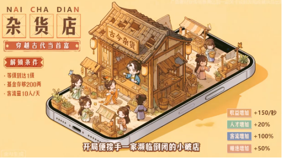 融合模拟经营与时空穿越双核心机制。玩家开局即穿越至盛唐时期,从一家濒临倒闭的糕点铺起步,运用现代商业思维与基础管理知识逐步拓展经营版图。随着剧情推进,可解锁多类历史场景与真实人物互动,涵盖秦始皇、杨玉环等标志性角色,实现文化元素与轻策略玩法的有机融合。