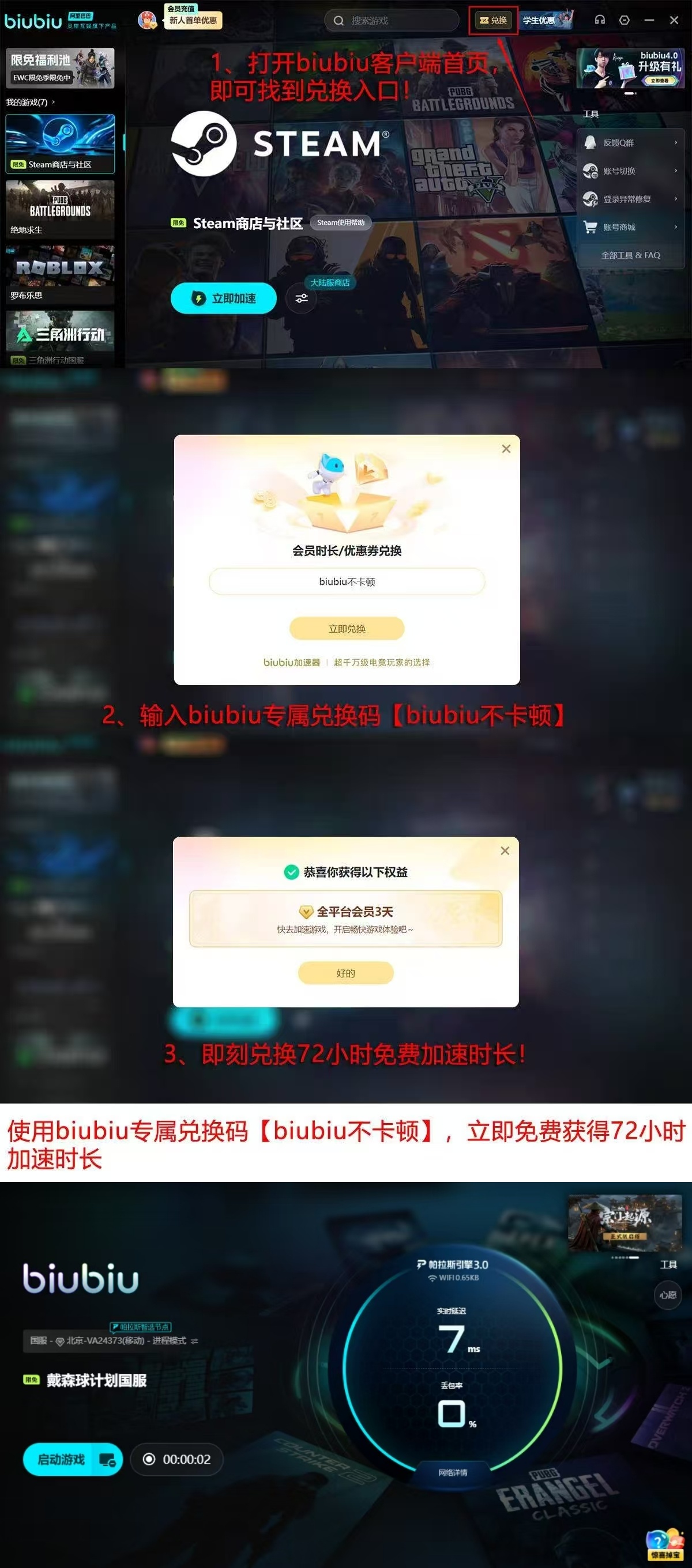 新用户注册即可获得24小时全功能免费试用权限;输入激活码【biubiu不卡顿】,额外获赠72小时加速服务,累计享96小时无限制体验。该权益覆盖全部服务器节点与加速线路,确保玩家快速接入稳定连接,专注沉浸于星际基建、自动化产线迭代与戴森结构组装的核心乐趣之中。