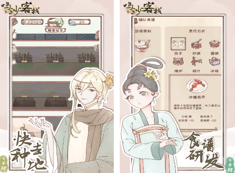 本作主打唯美手绘风与轻放置玩法,玩家化身鸣沙镇客栈掌柜,在沙漠绿洲背景下展开可持续经营。食材获取采用自给自足模式:开垦农田种植五谷、修筑水塘养殖水产、搭建牧场饲养牲畜,形成完整供应链。百余位背景各异的旅客陆续登门,身份涵盖西域商人、隐世医者、边关将士等,满足其个性化需求可推进专属支线,逐步揭开小镇背后的历史脉络。