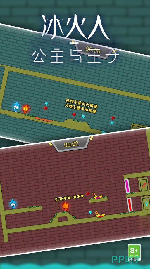 本作采用谜题驱动式关卡结构,每关设置逻辑型机关谜题,答案必须通过冰系冻结、火系燃烧的交替操作才能揭晓。机关功能随关卡递进变化,涵盖时间差触发、状态转化、路径重构等类型。建议玩家反复测试不同操作组合,掌握节奏规律;同时积极收集钻石资源,用于解锁辅助道具与关卡重试机会。