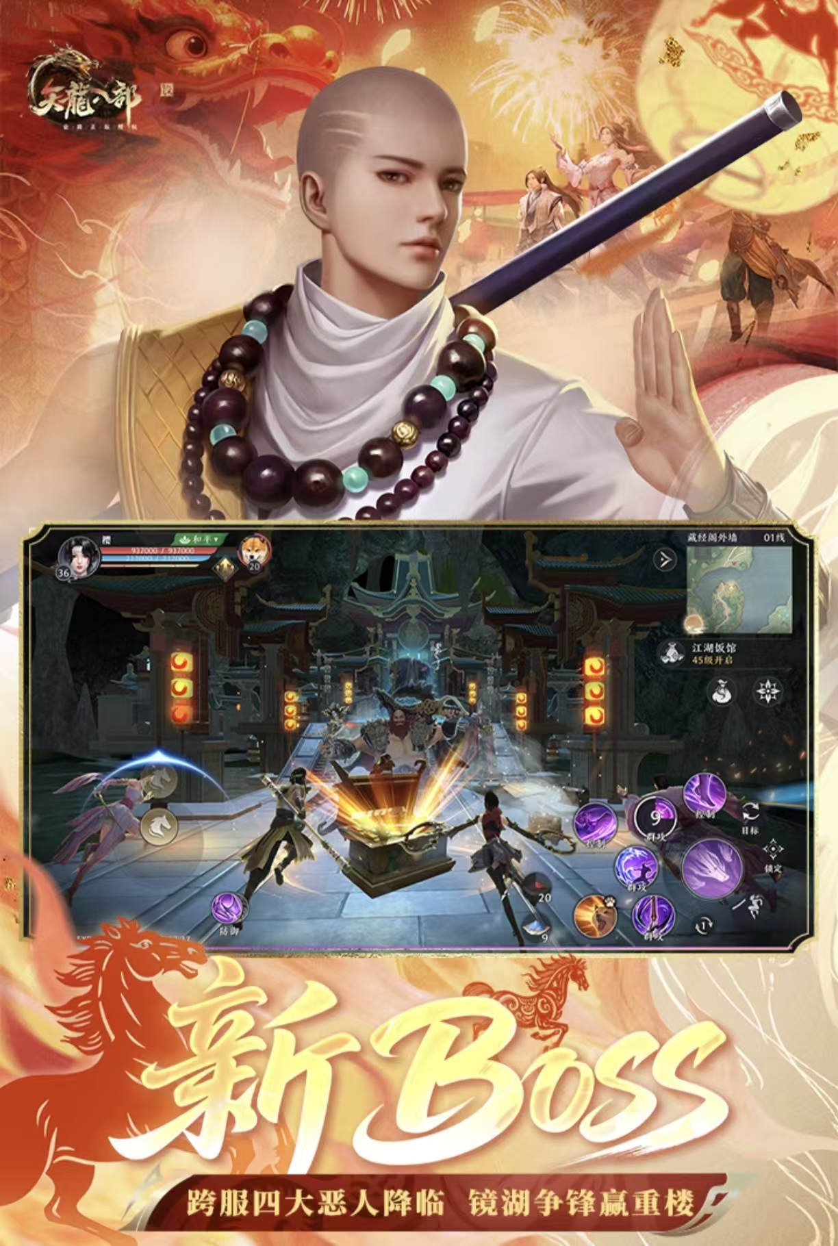 在金庸原著基础上拓展全新江湖线,萧峰、段誉、虚竹等原著角色以高精度建模登场并参与主线互动;场景建模采用PBR材质工艺,植被、水流、建筑均支持物理碰撞反馈;轻功系统内置滑翔、攀壁、踏枝三类位移模式,适配复杂地形探索;万人同屏战场支持帮派集结、据点争夺、阵营对抗,战斗帧率锁定60FPS,技能释放具备明确前摇与受击判定逻辑。