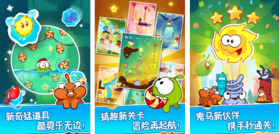 以重力、惯性与切割逻辑构建解谜主线,全篇共设200余关,覆盖森林、沙漠等多元主题场景。每关中糖果被绳索悬吊于复杂机关之间,玩家需综合判断物理变量,合理使用剪刀、气泡、滑轮等工具,引导糖果精准落入怪物口中,考验空间推理与时机把控能力。