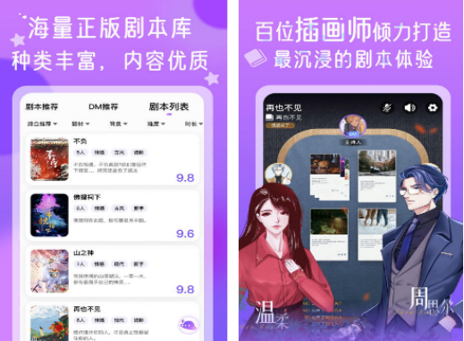 依托正版授权剧本资源池,收录超千本经专业编剧打磨的优质剧本,涵盖恐怖、仙侠、民国、赛博朋克等多元世界观。所有剧本均由百位签约画师绘制专属立绘与场景插画,配合全程配音与动态CG演出。首创“角色共情系统”,玩家在关键抉择节点可触发记忆回溯动画,深度代入人物动机与情感逻辑,提升沉浸感与重玩价值。