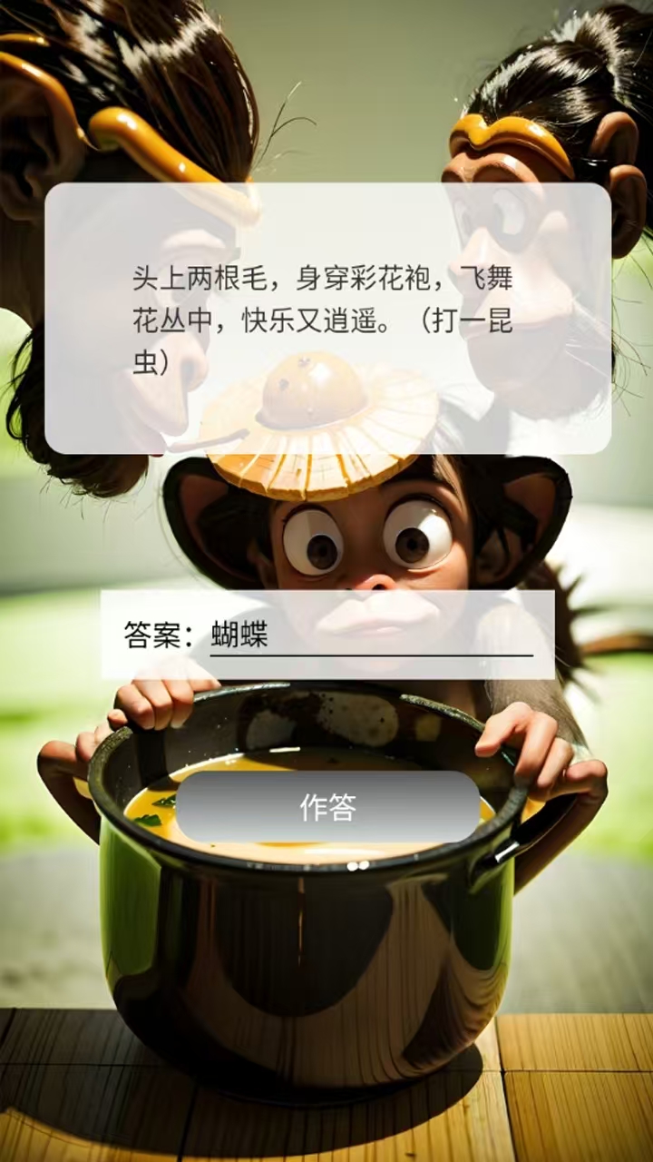 文化知识竞答类模拟游戏,场景设定为热闹非凡的猴子集市。系统随机推送涵盖古诗词名句、成语典故、历史常识等维度的题目,玩家需快速作答。每答对一题,现场猴子群体会同步舞动庆祝,集市整体热度值随之上升,最终达成全境沸腾成就。游戏对传统文化储备量要求较高,适合学生群体及国学爱好者。