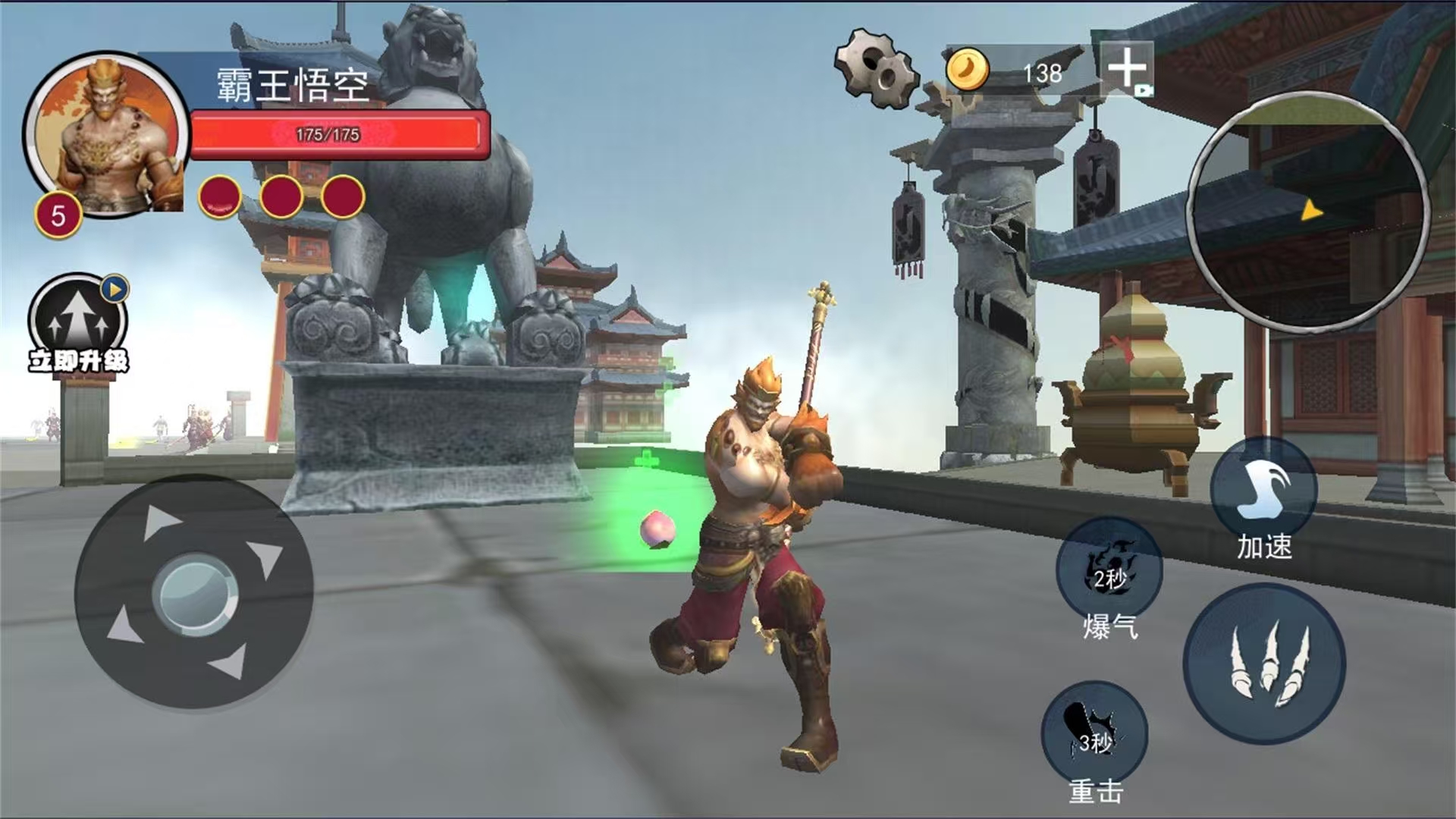 横版动作闯关游戏,深度融合《西游记》世界观。玩家操控猴哥穿越天庭、花果山、火焰山等经典场景,需实时应对巡逻小怪、机关陷阱与Boss战,同时收集散落金币用于技能升级与装备强化。战斗系统强调连招判定、闪避时机与资源分配策略,区别于纯平台跳跃类玩法。