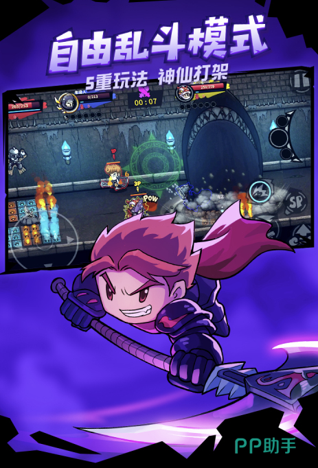 含火女、骑士、刺客、忍者等差异化英雄,各具专属连招链与位移机制。道具池超百种,支持多道具协同触发复合效果,例如“冰锥+暴击”触发范围冻结、“旋风+吸血”形成持续续航循环。弹幕密度高,走位容错率低,对微操与预判能力提出明确要求,硬核动作体验突出。