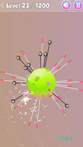 本作创新引入旋转圆盘地图结构:游戏区域为持续匀速转动的环形轨道,萝卜与炸弹交替分布于轨道边缘。玩家需在转动过程中预判落点,确保兔子准确降落在萝卜所在位置。初始阶段转速较低,便于掌握节奏;后期转速逐级提升,对动态预判能力构成挑战。失误踩中炸弹将清零当前得分,需从头开始积累分数,强化了操作精准度的重要性。