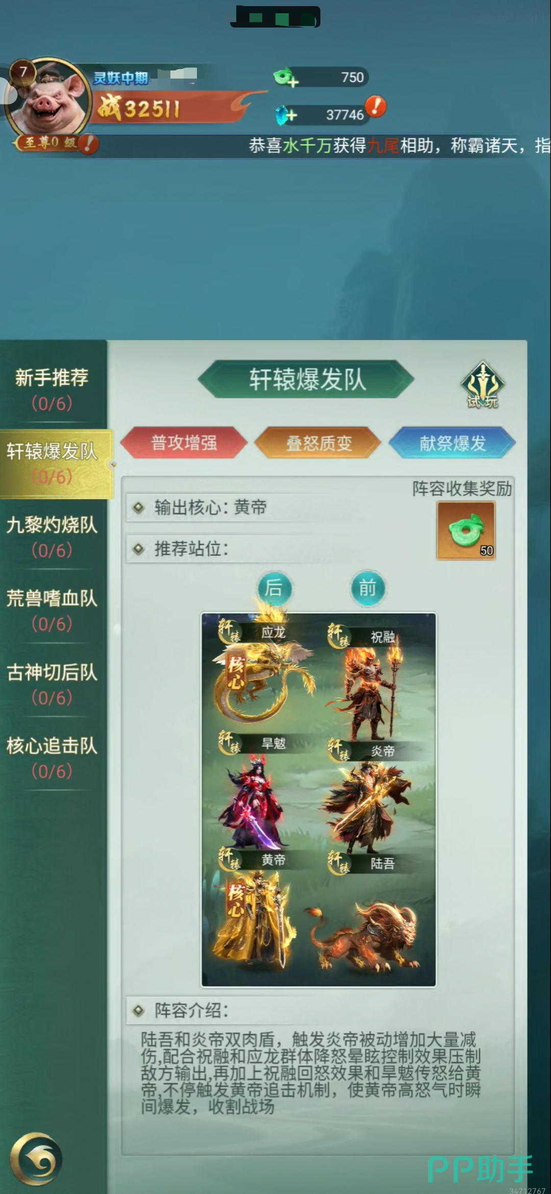 实战中,炎帝的抗压能力不仅体现在自身生存,更在于对整支队伍节奏的支撑。在「轩辕爆发队」中,炎帝与陆吾组成双前排坦系组合,配合祝融、应龙施加控制与负面状态,压制敌方输出节奏;再通过祝融与旱魃的怒气传递联动,为黄帝创造安全环境,实现多段爆发衔接。而在以黄帝+齐天大圣为双核的「追击流」体系中,炎帝同样能高效承接伤害、延长核心输出窗口,兼容性极强。