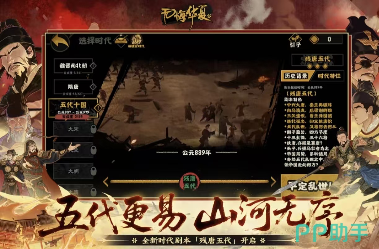 以中国历史为蓝本的策略卡牌融合作品,覆盖夏商周至明清等十余个朝代。玩家扮演君主,通过“征兵”“外交”“科技”“文化”四类指令卡推动国家发展。战场采用六边形地形系统,武将特性与兵种克制关系影响战局走向;随机历史事件(如“玄武门之变”“安史之乱”)增强叙事纵深与决策复杂度。