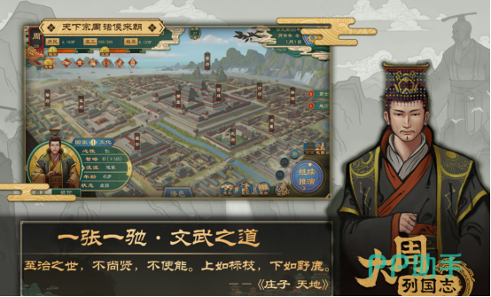 深度聚焦中国先秦时期诸侯争霸史,时间跨度自西周分封至秦统一前。玩家可选择齐、楚、燕、韩、赵、魏、秦七大国或中小诸侯势力,亲历牧野之战、城濮之战、长平之战等经典战役。外交系统包含合纵连横、质子交换、联姻结盟;内政模块涵盖井田制改革、铁器推广、郡县设立,所有重大事件均标注史料出处。