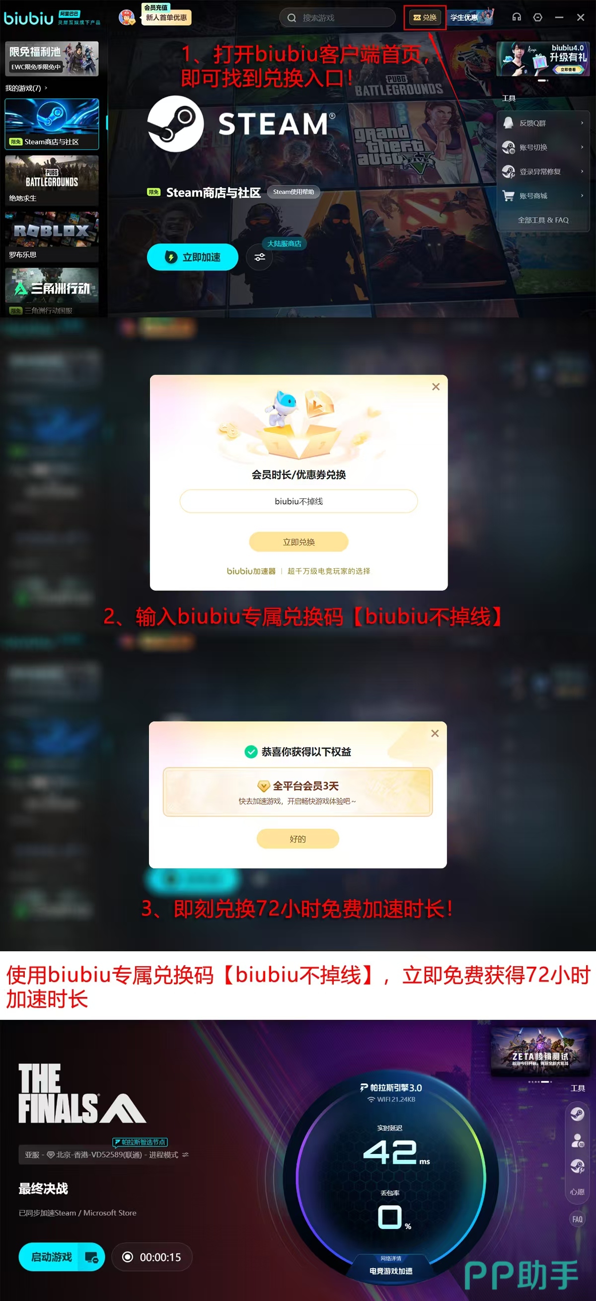 为保障S10赛季流畅体验,建议玩家提前配置专业级网络优化工具。biubiu加速器最新版已适配本季全部服务器节点,其搭载的帕拉斯3.0加速引擎具备毫秒级延迟响应能力,底层技术由阿里巴巴灵犀互娱提供支持。新用户注册后即可获得24小时免费加速时长;叠加兑换码【biubiu不掉线】所赠72小时权益,首登用户总计可享96小时无门槛加速服务。