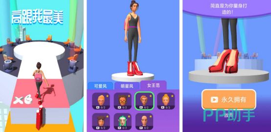 本作以强节奏跑酷为基底,构建出视觉张力十足的高跟鞋闯关体验。每双高跟鞋具备独立数值体系:鞋跟高度决定起跳初速度与滞空时间,鞋底摩擦系数影响急停与斜坡通过效率。关卡设计涵盖霓虹都市、悬浮阶梯、镜面回廊等多元主题,障碍组合随进度动态演化,强调策略换鞋与实时微操的协同配合。