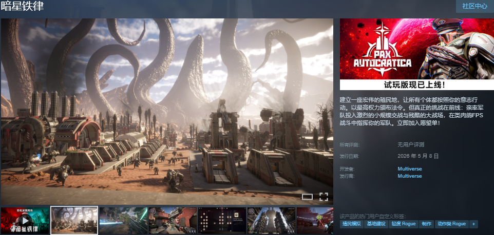 《暗星铁律》(Pax Autocratica)是一款融合深度政治模拟、殖民地建设与实时战术指挥的硬核科幻策略游戏。凭借其压抑而沉浸的黑暗宇宙观、高度自由的立法系统,以及“以战养治”的独特资源循环机制,自上线以来持续吸引着策略类核心玩家群体。不少用户在Steam平台搜索时反馈“搜不到”,实则因未使用准确名称所致——该游戏在Steam商店中正式上架名称即为中文名“暗星铁律”,对应英文名“Pax Autocratica”,中英文任一关键词均可精准定位。