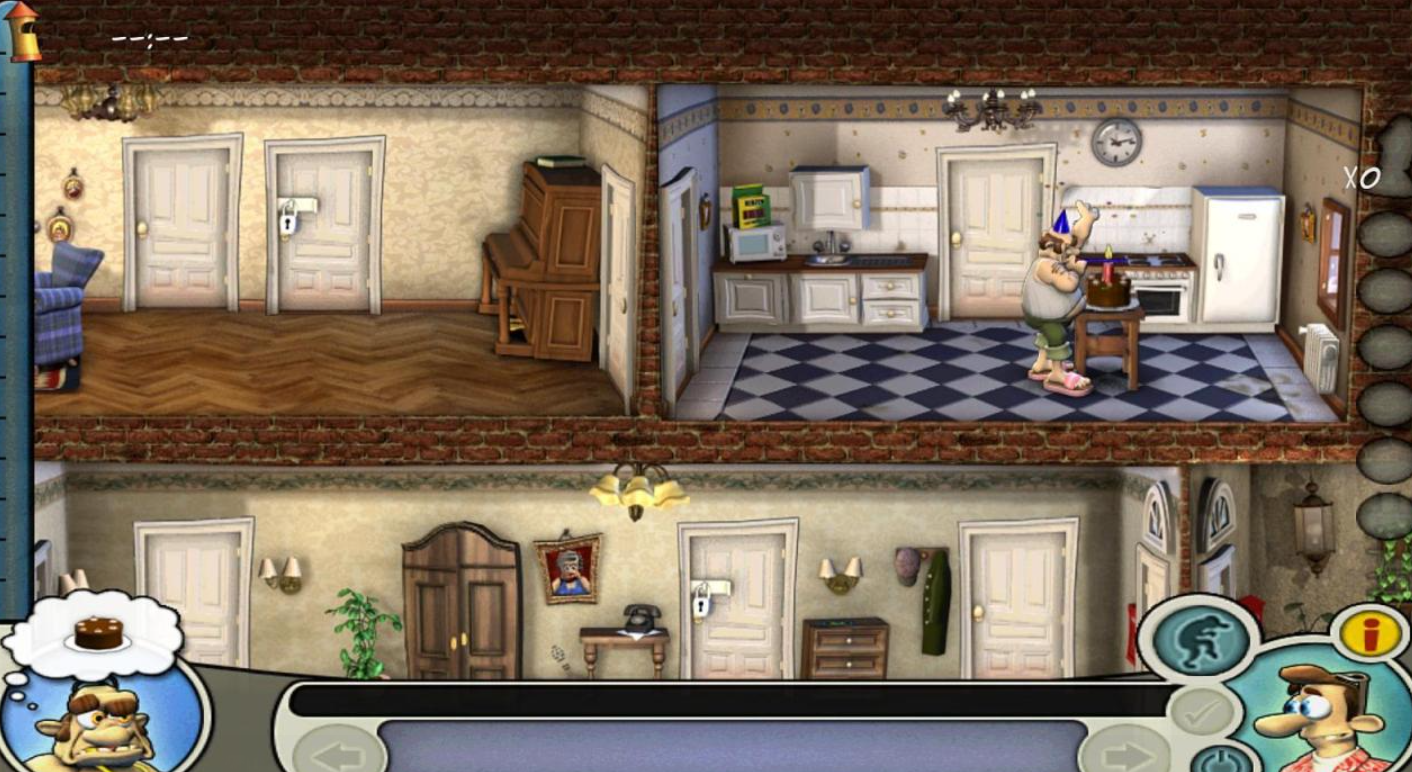首代整蛊系列延续手绘定格动画质感,画面细节丰富,光影层次自然。玩家通过收集弹簧、假蛇、香蕉皮等20余种恶作剧道具,潜入邻居家中布置陷阱。交互逻辑真实——邻居会因踩中陷阱而惊跳、滑倒、撞墙,甚至触发连锁反应。怀旧氛围浓厚,操作直观,是沉浸式恶作剧模拟器的代表作。